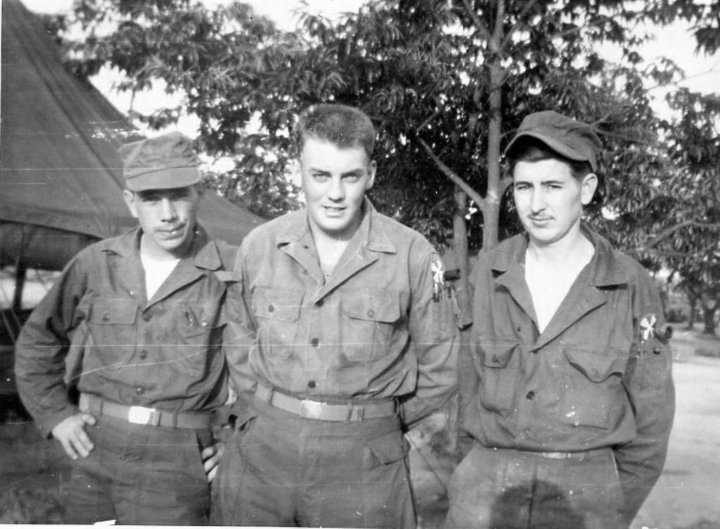 (Click picture for a larger view)I served in the Korean War from July 1950 until it ended about 3 years later. I am 73 years old and not in good health. While serving in the United States Naval Advisory Group, Chinhae, Korea, I enjoyed the friendship of Frank J. Vaughn or Vaughan. He was an electronics technician and I was a radio operator. I remember that Frank was a law student. How happy I would be to find this great guy before it's time to check out. Enclosed is a picture of us with another friend at the base in Korea. "Face" is on the left; I am in the middle, and Frank is on the right.