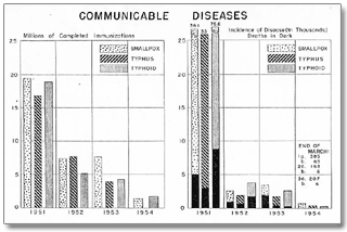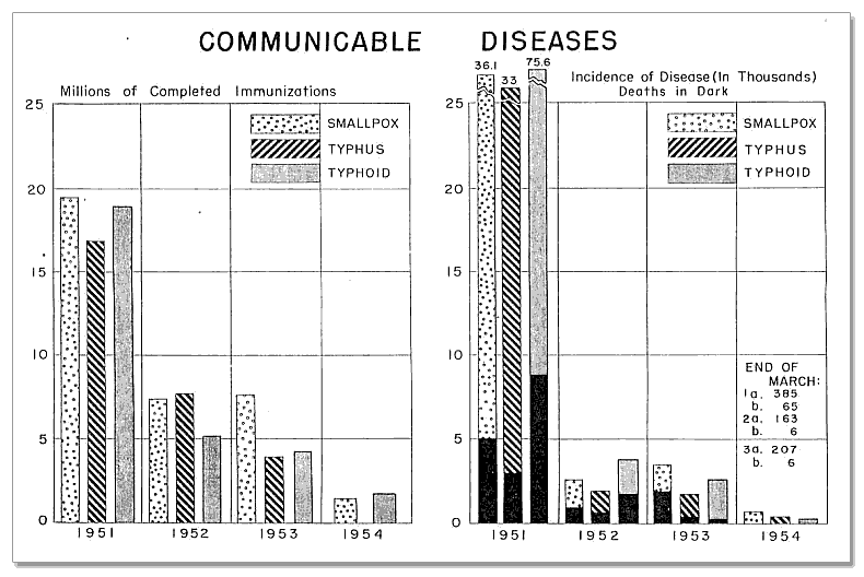 Under the Preventive Medicine Section come the mass immunization programs aimed at reducing and preventing disease. These programs proved exceptionally successful in reducing the number of cases and the death rate from disease.