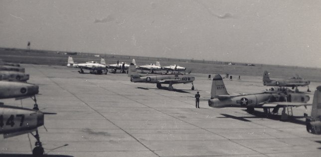 [Interview by Charles Knox with Paul Brown, Air Force, June 18, 2002] I enlisted here and went to St. Louis and then to Amarillo. Basic Training was intense for awhile. We arrived at St. Louis and had a waiting period of about a week before we were inducted and put on a plane, headed for Texas. It was storming and those small planes ride rougher than heck, bouncing along, but we arrived at San Antonio for a temporary stop, and proceeded to Wichita Falls, Texas.. The instructors in Basic Training were tough. We had one Drill Instructor, who would have you drilling about half of what the cadence is supposed to be. All the other drill instructors, when we were marching, would be laughing and heckling him; that was just his way of doing it. It’s a lot easier to do a regular cadence. He would slow us down, I don’t why. But, we got along good with him. I was inducted with three other guys from Tuscola. They were Charles Sanderson, Weldon Hackett and McLennan I was assigned to Mechanics A&E school. That was a real interesting course. It was a fun course. We learned how to work on aircraft engines. Later I came to Chanute for a month for an Engine Specialist’s course. We didn’t get our pass right away and I wanted to go home and see the folks who lived at R. R. Tuscola, IL, so I just took my Amarillo pass and walked out the gate, they really didn’t look at it, and went on to Dad’s farm. My parents let me have Dad’s pickup truck to drive back and forth. That night when I was going back to Chanute, the cops stopped me. He wanted to know why an airman was driving a Tuscola truck. He wanted to know, "Where are you from?" I said, "I’m going to school here" and "My folks live near here and this is Dad’s truck." I guess he believed me. He didn’t ask to see my pass. It’s a good thing he didn’t. But anyway, I got back on the base that night and I did get a legal pass. The course lasted a month and then I returned to Texas. After I returned to Amarillo, lacking three days of finishing school, I received a call that Dad had a heart attack. The Red Cross contacted me and made arrangements for me to go home. When I returned to Amarillo I was to received orders to go to F-80 school, but it was cancelled while I was gone so I was waiting around the squadron, for new orders. Later when I went up to squadron headquarters and asked the guy what I was going to be doing. He asked me my name and he looked through a list and said, "there are two bases open today, one in New Mexico and one here in Amarillo" and asked "Where do you want to go?" I said, "I’ll stay here in Amarillo if I have a choice." So he made the orders and I stayed at Amarillo as a mechanic. I was working on the fighter planes. My wife, Wanda came down as soon as she could after I got established. She got a job at the Pioneer Natural Gas Company and we made out all right. We ended up staying the full four years in Amarillo. I spent two months in Florida at Tendell Air Force Base working on F-86’s on flight line. It was an interesting job. We flew on B-25’s that were stationed in Amarillo for the officers to get their flight training in and they had some of them fixed with seats, ten or twelve of them. You just had a little square hole you could get in and out of and they showed you how to use a parachute to bale out. Put your hands up on the side of the door so you don’t bang your head as you’re going out. This one airman, was really scared and was sick on the plane, but he might have been the smart one because, we landed at Wichita Falls and let him off, and sent him down on a train. But after we arrived it was interesting work. They had flight training there for the pilots and gunnery practice. There was a plane that would pull a target for the F-86’s gunnery training practice. Panama City and Tendell sits right on the Gulf. They had an Officer’s Club on the beach. It was pretty neat. Something that I didn’t realize, they said any time one of the planes crashed out in the Gulf, and the pilot was killed, the dolphins would get behind them and start nudging, until they are pushed to shore. That was fascinating to me. I guess they were trying to keep the Gulf clean. One of the main things I remember at that time, they were having a drought in Texas and would have dust storms pretty regular. In fact, a lot of times they would have one from up north and the dust would be so thick in the air that it would just settle in our area. One morning we had a dust storm so severe that all the streetlights came on. It was that dark at 11:00 in the morning. I saw a lot of changes in planes. But all the time we were there we stuck to the F-84’s for the training purposes. They had some bombers in once in awhile and a lot of service to planes in flight that would be passing through. I never realized those planes would glide like they did but there was a time or two when one would come in, that had run out of fuel up over Oklahoma; they were at an altitude of probably 30,000 to 35,000 feet and they glided clear into Amarillo. I didn’t know they could glide like that. But, if you have the height and the speed you can. Once in awhile those Navy planes would stop in to get serviced. That was quite a sight to see. They land right on the end of the runway. They’re used to landing on a carrier. They would hit the runway right on the end and by the time they got out to the first turn-off, they were ready to head up and get serviced. The Air Force guys would use about the whole runway to get stopped. Once in awhile, you’d have a plane come in without the power and they’d end up going off the end of the runway which was, I think Rt. 66 at that time. They’d go clear across Rt. 66 and hit a river or railroad track before they finally got them stopped. It made it interesting for the tourists. I did get to meet Jerry Van Dyke, Dick Van Dyke’s brother in some USO shows. Jerry was really good; he was a nut with his banjo. We did 