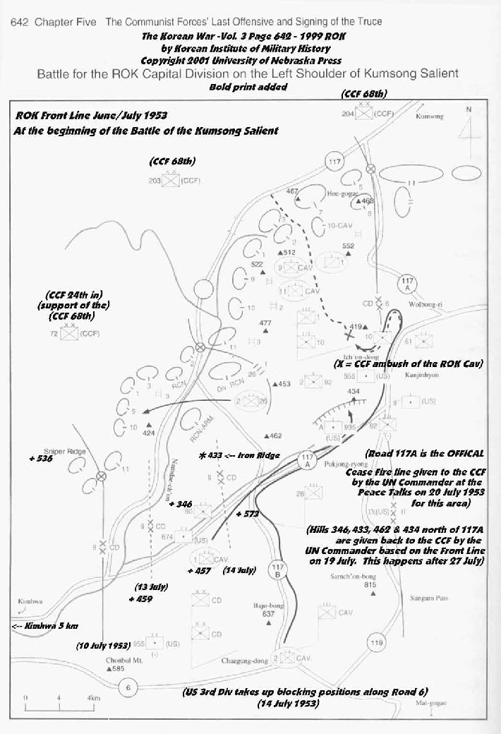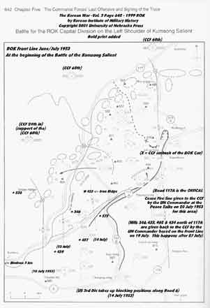 map shows the Kumsong Bulge that was reduced by the Chinese in July of 1953. The map is located on the following