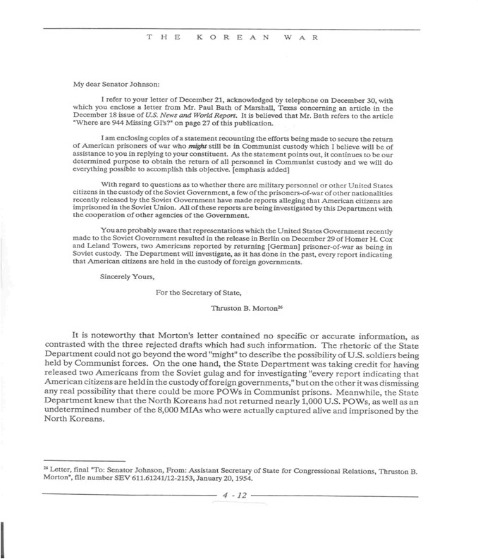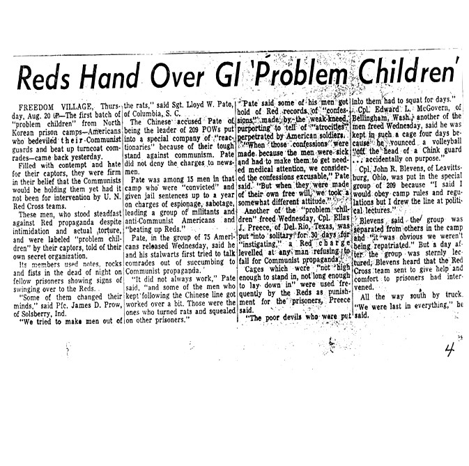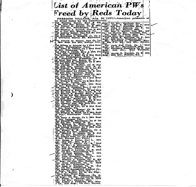 Article – List of American PWs Freed by Reds Today Article – Death March Kills 550 Yanks Letter – US Senate Committee on Foreign Relations, Jesse Helms