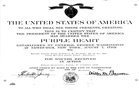 During the Korean War of 1950, I and hundreds of my fellow servicemen were captured by Communist Forces and spent the next three (3) years as Prisoners of War. Although we had little or no training in the Communist tactics of torture and brainwashing, many valiantly resisted and some survived until 1953, when we were finally liberated and put under control of the United Nations at Panmunjom, South Korea. This is my story, an actual, factual and chronological account of events occurring before, during, and after my incarceration. It is written without malice or prejudices, but with a profound feeling of hope that no other American in the armed forces of the United States, or any other nation for that matter, will ever have to endure the pain, suffering, and humiliation as a Prisoner of War. I'm a humble survivor striving to put past experiences and nightmares behind me while enjoying my freedom in the company of my lovely and caring wife and our four wonderful children. It’s been many years, many sleepless nights, and many trips to doctors seeking medical care and attention for what I endured to ensure the freedom and security of my family, and families of all free nations. I am here…… putting my life in order, while wondering how to deal with the disturbing world news confronting me whenever I turn on the television set. Sadly, I think of the “freedom” George Washington, the father of our country, had envisioned for this new nation, the “freedom” dreams of President John F. Kennedy and the startling awaking of the American people following his assassination. Add to this the hate groups, the left wingers, the right wingers, Cuba, Panama, Vietnam, Cyprus, and I ask myself, "WHY? WHY?” When will the American people rise from their placid, quick-to-forget, "I pay my taxes" attitude and realize the possible fate that awaits our country. “They are over there, and we are over here. Why bother?” As I regress into the events of my childhood, I am reminded of young men and women longing to come to terms with themselves and their future, for I was one of them. However, I am encouraged and drawn to the “courage” exemplified by these young service men and women who valiantly face and honorably prevail over adversities in the services of their country. With profound respect and admiration, I proudly salute the honor and dignity of my fellow comrades who survived and those who died in the Korean War. And, I humbly dedicate this story to my family, to all former Korean Prisoners of War and their loved ones, and especially to all those with whom I have had personal contact and the honor of serving. I personally want to “acknowledge” and thank all of my friends and buddies who shared their stories and experiences with me. Also a special acknowledgment and thanks to my good friend and buddy Benjamin Comeau for giving me copies of his drawings and a copy of the Military Script with all of our names from Company Seven, Camp One/Three, Ch’angsong, North Korea, from October 1951 to August 1952. Chapter 1 - FJ ChapmanI am Franklin Jack Chapman, a patriotic American who survived incarceration as a Prisoner of War for 33 months during the Korean War. I grew up in the middle and far western half of the United States, and I’m especially proud and respectful of my Cherokee Indian heritage, my nationality as an American, my family customs, traditions, kinship, and above all, the freedom enjoyed by all Americans. I was born in the Flat Rock area of Mazie, a township in Mayes County, Oklahoma, a short distance from the Grand River, in the house of my mother’s father on January 24, 1933. I never knew any of my maternal grandparents, except that they were of Cherokee Indian stock. My grandmother had died on January 9, 1929, and my grandfather had died 11 days before my first birthday. As for my father’s side, I can only relate what I have been told over the years, since I never really knew him or what he was like. My mother never spoke of him. My mother had remarried, and by the time we moved to Muskogee, Oklahoma, in 1939, there were three of us boys. However, due to misunderstandings and a faltering relationship with my stepfather, I decided to take control of my life. I had dropped out of high school at the early age of 14. By the time I was nearing 15 years old, I had already traveled (by myself) from Oklahoma to California, then to Washington, back to Oklahoma, then to Michigan and back to Oklahoma. At age 15, the only work I could find was gathering pecans and walnuts, and working the cotton and hay fields. During this period, I lived with my mother’s brothers and worked at odd jobs. Then in the summer of 1948, I worked in the onion fields while staying with my uncle in Michigan. It was here I had decided, “This is not the life for me!” With my meager savings, I bought a bus ticket to Oklahoma, where I had a couple of uncles and an aunt who lived there. While there I tried to get a job working on the railroad. I had heard the railroad was looking for help around Oklahoma City. So with little more then a few dollars in my pocket, I took off for Oklahoma City in search of a job on the railroad. It was late in the afternoon when I finally found the Railroad Foreman’s office. When I entered the office, I told him I was 18 years old and needed a job. The foreman took one look at me and said, “You can stay the night here, but tomorrow morning, I don’t want to see you around.” He took me to the mess car where I was fed, then showed me the sleeper car where I stayed until morning. When I awoke, I didn’t really know what I was going to do! I had less then a dollar in my pocket. I picked up my bag, which contained a change of clothing and my Bible, and started hitchhiking to Tulsa, Oklahoma. Around lunchtime, I found a store and bought some bread and a soft drink. This left me with about fifty cents. Hitchhiking was bad, so I kept walking. Occasionally someone would stop an