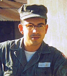 On one of the rare occasions that he played pranks during duty hours, Captain Posner had the supply boys sweating bullets when, with straight face and earnest tone, he ordered 'AC batteries' and a 'directional whip antenna.' Could the brilliant Captain Posner not know that whip antennas are non-directional by design and batteries generate direct current (DC), not alternating current (AC)? He was joking, no? Who dared be first to laugh? RTT clerk W. Olson was a perennial pest of the Orderly Room. This was not the Motor Pool Ardell Olson from Murdock, Minnesota, who worked in the Motor Pool—a friendly chap with an easygoing disposition who made fiendish hand-and-brain-teaser puzzles out of bits of wire and looked to the farm for his vocation. Minnesota was also home for Lorenz Wessels, another hardy, down-to-earth guy. The farm boys in Hut 2 were perhaps the reason why it was a quiet place to live in. No, not farmer Olson. It was RTT Olson who worked down the hall that buzzed into the Orderly Room like a mosquito when the 1st Sergeant was not around, carrying a cryptic expression on his baby-face. Would he be on guard tomorrow? Why didn’t we answer his teletype message? Who was going to be the pay officer? A tone of hubris and a talent for inventing arguments made it difficult to know whether this guy was for real or trying to be funny or what. The RTT NCO was a frustrated reserve officer with Sfc stripes. From outward appearance he was an intelligent man, claiming expertise in electronics and photography. Sfc O was fond of stopping at the Orderly Room to call someone. When he stood speaking over a clerk’s phone, his body rocked from side to side in evident response to his singsong voice. The swaying was part of his personality. He had a way of swaying in and out of any situation. Even his walking was a sliding, dance-like strut. He never looked wholly awake, possibly owing to his constant singing and rocking himself to sleep. O’s lazy motions belied an aptitude for swaying gullible officers with his ideas. Had they been examples of common sense and useful to the company, his haughty air might have been overlooked. Naturally he got blamed by the men for everything that went wrong. For a while it was hard to choose between Sfc O and Lieutenant F for the title of Company Villain. It was the lieutenant, however, who won the contest by a landslide. It was a relief to get out of the Administrative Building at 4:30 and into the fresh air of the compound. The change of pace from “orderly” to hut living a few paces away was welcome reward for the day’s work. Would it be a movie tonight or just beer and gags? The choice sometimes was a quiet evening of writing letters, reading, playing cards, or sleeping. The latter was never my choice. It would have made me feel like an invalid. The end of the day was a pleasure also because it was the actual end of another day, making it a day closer to leaving. The official end came when we woke up in the morning. The only difference between supper and lunch-or-breakfast was that it happened at 1645 hours. Otherwise it was simply another excuse to kill time. Joshing aside and in fairness to the cooks, they outdid themselves once with a “Southern Fried Chicken” that was really good. This masterpiece was served in sparing portions. No sweat. When Bill and I were through, we took our dirty trays to the KPs, walked out the back and around to the front, and came in for chow all over again. This was possible before the requirement for headcount was taken seriously enough to add to the duty roster. What happened during the night is a story told many ways, for each hut had its own atmosphere and personality, and moods varied with the season. Going from one hut to another, which I did on guard duty, was like passing through different worlds, each with a clique of men casting the mood for that hut. Hut 4, for instance, was the jazzy “hip” hut. Hut 3 was the loud, sometimes violent hut—always on the go except in the morning at reveille. Hut 2, my hut, was the relaxed, peaceful variety, a strong reason why I moved into it from Hut 4. Another reason was that in Hut 4, rain water leaked onto my bunk. From time to time the First Sergeant ordered the men to live in designated huts according to their jobs in the company. There was a Radio Repair Hut, a Motor Pool Hut, etc. Bill’s gripe summed it up. He said, “We have to work all day with them—do we have to live with them, too?” The arrangement never worked. After all the prescribed moves were made, we trickled back to our favored spots. The atmosphere of each hut was, in part, a function of its décor. No other hut had #2’s selection of pinup girls on the walls, or Olson’s guitar with missing string, or Claypool’s modernistic, handmade mobile, or my zany watercolors, or a lamp made from an empty Chianti wine bottle on top of an orange writing table, or a custom-made calendar, or lamp shades on ceiling lights made from inverted cookie tins, or the assortment of handmade footlockers, some large enough to hold a body or two (just kidding). We came home one night to find our footlockers painted OD. This Foul Season outrage (during the time that Lieutenant F was in the company) made us swear we’d paint them over again with bright colors, in stripes, checkers, or polka-dots. When the blood temperature came down, the insult was just added to the gripe list. One night while fellow Brooklynite Irving Peckler and I developed some film in the dark room, Peckler (in a nostalgic mood) wished we could go out for pizza. "Well," I said, "I can make it if we had the ingredients." It was a deal. What started as a joke became a plan of action. Peckler sent a grocery list home and when the stuff came, we slipped into the mess hall kitchen at night and did it! The tricky, secret mission never got into the history log book. On the night that Sicilian pizza came to Bupyong, Peckler and DeBlasi became Hut 2 heroe