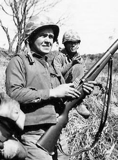 Pre-MilitaryMy name is Charles Joseph Eberlin. I was born on October 22, 1929, on a farm near Chesterfield, Missouri, a son of Joseph Edwin and Viola Marie Barklage Eberlin. I was named after my Uncle Charles and my father. We later moved to Roxana, Illinois, and I finished middle school there. Then we moved to Godfrey, Illinois, just outside of Alton after we inherited my grandparents' fruit farm, and I went to high school in Alton. My grandparents were in failing health so we moved there to operate the 40-acre farm, which had 1800 trees. My parents were Joseph Edwin and Viola Maria Barklage Eberlin. They were not immigrants, but I am sure their parents were from France and Germany. My father's family was located in Brussels, Calhoun County, Illinois. My mother was from the St. Louis area. My father was a pipe-fitter for Shell Oil Company in Roxana and also ran the farm. We sold fruit to the town of Alton and nearby locations. Before my father went to work for Shell Oil Company, he was in the WPA during the Great Depression years. My mother was busy raising five children. With that many kids to support, my whole family was extremely poor. I had four brothers and one sister, and all of us were born in the United States. We were a very close family. My sister is the oldest. She is still living at the age of 81. My older brother Floyd, who served two hitches with the Seabees in Vietnam, died at the age of 69--not from the war. He was a year and a half older than me. I have two younger brothers. Harold was a year and a half younger than me. He served in Korea after the cease-fire took effect. My other brother Larry was eight years younger. He served his time in the Marine Corps stateside. I was a well-behaved child because I had stern parents, especially a stern father. He died at the age of 41, so with my older brother serving in the Navy (later the Seabees), I was basically in charge of the farm at age 14. My mother and we five kids ran the farm for at least four or five years. Since help was scarce, we employed the help of the young boys in the Western Military Academy in Alton to help us harvest the crop. It was strictly a volunteer effort on their part and the best we could do. We had a hired hand worker to assist so we could finish high school. During the winter months when work slowed down at the farm, I had a small job after school delivering groceries for a local grocery store. I was 16 and had my driver's license. I liked my teachers. They were very instructive and taught me well. I paid attention during class and never took assignments home after school because I had farm work to do. I never joined or belong to any such group as ROTC. I never had the time or money for it. I was never in the Boy Scouts and I didn't participate in any sports because of the farm either. Later I was a fast softball pitcher and did real well. A group from school formed a boy's club in North Alton and the adults of North Alton sponsored it and kept watch on us. It was labeled the "Bow Tie Club." We wore bow ties to the dances around town for fun, and I was the president. Our meeting place was an abandoned grade school. The outbreak of World War II didn't affect my family that I remember. I don't recall losing any relatives or suffering. I am sure that there were students and adults who did many things to support the war, but we were so busy running the farm that we didn't get too much involved other than the fact that my brother Harold and I took a plow and a team of horses all over town and plowed victory gardens for many, many residents. That was a major contribution in the war effort. Because of the war, food supplies throughout the country were less, especially fresh vegetables, so we plowed gardens in back yards, side lots, or wherever there was space for a garden so people could grow their own food. We were only in our early teens, but we made a few bucks. Joining UpI worked for Owens Illinois when I was 17-18 years old. The company was one of the largest corporations that manufactured glass containers. It was headquartered in Toledo, Ohio, but was also worldwide and diversified in other products. I was in production for six months, then they transferred me to the accounting department. Initially I worked as an accounting clerk, doing payroll and budget jobs. By that time my father had died and Mom had sold the fruit farm and moved to St. Louis for a short time. She later went back to Alton. I lived with a friend who got me the job; then when Mom moved back, I moved back in with her and my two younger brothers still at home. In 1948, while I was working for Owens Illinois, I joined the Marine Corps Reserves in St. Louis, across the river from Alton, Illinois. At the time, guys my age could be drafted. I felt that if I had to go into service, I wanted the Marines--the best. I didn't know any Marines personally, but all through the World War II years I had always admired them. I don't really remember much about the Marine reserve unit in St. Louis. I was there for such a short time--and not full time, that I never had an awareness of how many reservists were there. I don't remember attending any reserve meetings. They were held at night after my working hours. Before much involvement with them, I was activated for the Korean War. I didn't attend any summer camps with the reserve unit. When the war broke out the Marines were short on men. I was sent to Parris Island to go through boot camp, and then went on to Camp Pendleton for more training. I think everyone had heard about Korea through the media, but I was never aware of too much detail about it while my training was going on. My family and friends were down and expressed great support mentally. Like anyone, I didn't want to go to war, but I knew that I was destined because I had signed as a Marine. Boot CampI traveled alone to Parris Island from Illinois. As we got closer to Parris Island, others who were going into the training program seemed 