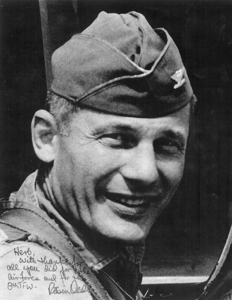 In Vietnam I was an armament supervisor for Robin Olds' F-4 Phantom. Robin Olds was credited with four MiG kills during that war, plus 13 German kills in World War II. I retired from the Air Force at Warner-Robbins Air Force Base, Georgia, in September 1970 as an E-7 Master Sergeant. My philosophy of "keeping all things in moderation" was the theme of a newspaper article that appeared about me in a local paper called The Weekly in 1995. View the article HERE. My favorite quote is, "A little levity does not take away from the seriousness of the purpose." Awards and Decorations