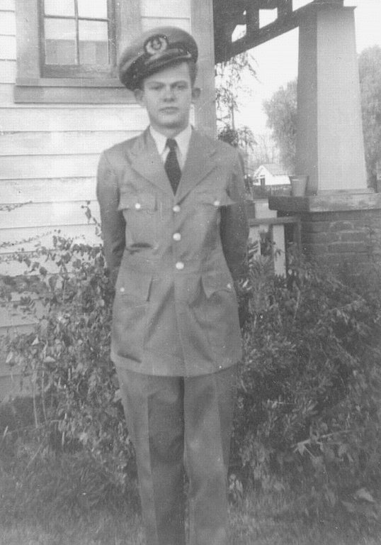 I went to grade and high school in Kingsburg, but I left school in 1944 as a junior in high school to go to sea in the merchant marine. I was in the Class of 1946. When I returned, I took a test at my old high school in 1952, and received my regular diploma. I am considered a graduate with the Class of 1946 and attend their reunions, etc. I worked from the time I was eight years old doing something--farm work, paper route, selling Liberty and Saturday Evening Post magazines, and working in a winery. I had a window-washing and sweeping-out-stores route in town. My first after school and Saturday job was in a local grocery store. I received $18 a week. I also worked in a gas station. I was not too unusual. I lived in a small town which then had a population of about 1500. It was the Great Depression, and most kids my age worked wherever and whenever they could. We collected metal, old tires, etc. in what were called "scrap drives" during World War II. We kept pretty busy. I was also a Boy Scout and my troop collected scrap metal, paper, etc. for the war effort. Many Japanese lived around my area, and almost immediately after Pearl Harbor they were all shipped out to camps. Perhaps it was not right as we think now, but you had to live then and experience what was going on to understand it. One thing I thought was bad was that some element in as small a town as we were burned down the Buddhist Church/School, a couple houses belonging to Japanese, and a warehouse where they had a lot of furniture stored. It was a bad thing, but again, folks were mad--and they were scared. For months we thought we would be invaded by the enemy. In fact, their subs did shell Santa Barbara and a couple of other towns along the coast, which didn't help the situation any. I was in the latter half of World War II. I was too young to enlist, so a couple of friends and I went to San Francisco and Richmond, California, and though we were under age, we managed to ship out in the merchant marine. I shipped in a Standard Oil tanker built in, I believe, 1915. It was the SS J.A. Moffat, which carried high octane airplane fuel on a northern run to Alaska and the Aleutians. We really didn't realize what a dangerous job it was in those tankers. We were just kids looking for adventure, and we didn't want a whole war to pass us by! Army Air Corps/Marine Corps ReserveArmy Air CorpsJust before Christmas 1945, I signed off the ship for the last time and went home. I was a little upset because I had missed all the VJ-Day celebrations. I bummed around a while with some of my buddies who had just gotten out of the service, then in March 1946, I decided I would enlist in the Army. On 6 March 1946, I enlisted in the Regular Army, and was assigned to the Army Air Corps.