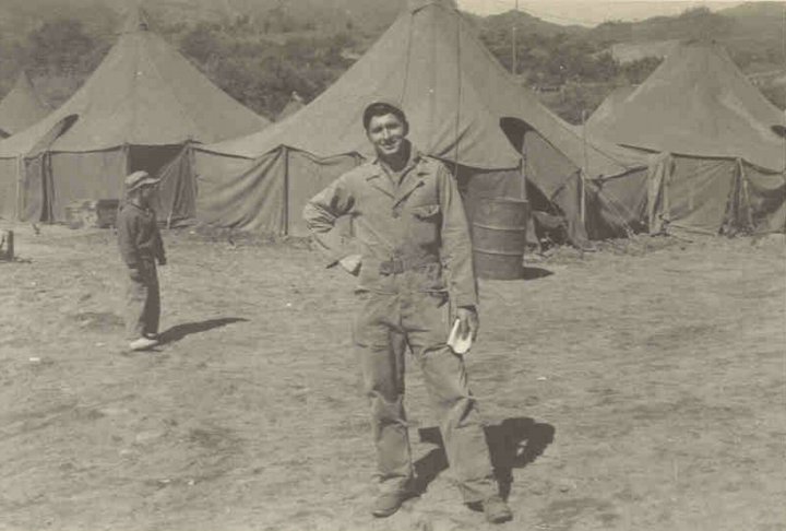 Marine SupportMy assignment with First Marine Support was at the 1st Marine Service Battalion in, specifically, a laundry and shower group. This was from September 1951 through the middle of February 1952. My tasks were to maintain and repair large laundry washers and dryers, set up showers and boilers, place and service hydraulic pumps that drew river water, and to help sort and wash dirty clothes. Marine units would come to our area for a few days of "reserve." We had stacks of clean dungarees and underwear and hot showers. Marines got their first good shower bath in weeks, traded grungy garb for clean, fresh clothes, ate well at the nearest Mess Tent, and went back to the line refreshed, healthier, and feeling/looking good. It was at this location that I was injured in Korea from something other than the enemy. I do not recall the Marine's name, but I heard of a "short-timer," soon to go home via rotation, who was accidentally killed by being crushed between two trucks while returning to G-3-1 from a medical treatment. I did not have that kind of worry, although I was injured about the time I was scheduled to rotate home. I sustained a hand injury at the 1st Service Battalion's Laundry outfit on December 17, 1951. While repairing a large, belt-driven washing machine, I asked the operator what it had been doing before it