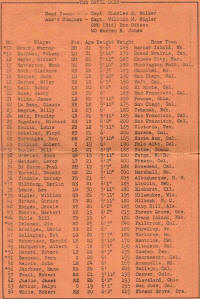 When my orders came in, I was one of more than a dozen new PFCs who were sent as a group to Hawthorne, Nevada. Our train tickets from San Diego to Hawthorne were paid by the USMC. We were allowed a brief stop in Las Vegas along the way. At Hawthorne, I took fire-fighting classes, and was awarded a Firemanship Certificate. I took a military driver training course, and held a military driver's permit. I was a member of the MB/NASD Basketball team that took third place in the Tri-State Tournament in the winter of 1949-1950. On June 30, 1950, I was released from active duty at Great Lakes Naval Center, Chicago. |