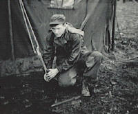 I was in the Division Headquarters Company and we were a little ways behind the actual front lines. We had a platoon of the Company called the Defense Platoon whose job was to secure the outer edges of the Division Headquarters area. They were augmented by a platoon named the "Honor Guard Platoon." They were guys recruited from front line units who were kind of spit and polish guys. During the daytime they were used as Honor Guards for VIPs and such. Also, there was the use of other members of the Company--like the motor pool, and these drivers, mechanics, and parts clerk (me) also did nighttime guard duties surrounding the area. We were busy during the daylight hours with "daytime jobs", and then did our share of the nighttime guard duties. This made it quite tiring, as we got very little sleep during the night doing our two hours on and four hours off shifts.