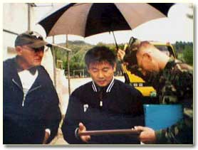 general practice in Chicago. In January, 1951, I joined the 2ID unit while they were in combat and quickly became a seasoned combat surgeon. When I arrived at the front in South Korea I was befriended by the battalion surgeon for the 3rd Battalion, 23rd regiment, Captain Ernest L. Graveline of Pawtucket, RI. He and I became close friends and worked closely together whenever possible. Ernest was experienced in war and was totally dedicated to the care and well being of the sick and wounded. At the end of April 1951, after recovering from the first spring offensive of the Chinese Communist Forces (CCF), Captain Graveline and I were assigned to a forward position as doctors for Task Force Zebra which consisted in part of the 2nd and 3rd Battalion, 23rd Regiment of the Second Infantry Division. I established an aid station adjacent to the main supply road in the village of Chaun-ni on the northeast front along the 38th parallel in a very mountainous area close to Hill 1051. My aid station was a large squad tent which was dug into the ground adjacent to the cement foundation of a bombed out Korean school. What ensued during the early days of May, 1951 and especially on the morning of May 18 are described in my article "18 May 1951" which is attached. Through the years I wanted to learn the details of my experiences in Korea and what really happened to Ernest Graveline. I already knew from corresponding with his parents, who are now deceased, that my friend had been captured by the CCF on May 18th, was harshly treated by his Chinese captors and had died as a POW. But what happened to my medics? Where is Chauni-ni? What is there now? Was the Korean school ever rebuilt? Little information was available to me until recent years when I was able to get some answers and information through the internet mainly from the Korean War web page and its various links. I purchased maps of Korea , got some additional maps from the US Army, and obtained names of war veterans. Through the internet I was able to contact other veterans and corresponded with them via e-mail and posted notices. I joined the Second Infantry Korean War Veterans Alliance and was made aware of the 50th Anniversary Revisit Trip September 10-17, 2000. I had been encouraged to return with this group by its founder and President, Joe Hess. On arrival at the Seoul airport, all veterans were honored by a Korean honor guard composed of Navy, Army, Marines and Air Force. This was an overwhelming experience and throughout the journey in Korea from Seoul to Taigu and then back to Seoul we were honored by Korean and United Nations troops. There was a typhoon raging off the coast of Korea during the entire week that I was there. The highlight of my return to Korea came on Friday, September 15 when Major Charles "Chip" Knighten, Deputy Command Historian of US Army Forces in Korea arrived at 10:00 AM at the Capitol Hotel in Seoul in a downpour. With him was an army van with a driver named Air Force Pvt. Tracy. Major Knighten and I had corresponded prior to my trip by e-mail so he had an idea of what our goal was. He was well acquainted with the details of the May Massacre but he had not visited Hill 1051 or Chaun-ni. We were not certain if the village of Chaun-ni still did not exist nor whether a school was on the now busy road Highway 44. Three other members of the 50th Anniversary Revisit Korea group, Al Seyther from Haddenfield, NJ, and Jerry Miller with his daughter, Amity from Simpson, IL joined Major Knighten and me. Al had been wounded and captured on May 18 by CCT troops and had witnessed the road block of Task Force Zebra. Jerry Miller’s father was wounded in a nearby area and died in a front line medical facility. It was important to all of us to find the village of Chaun-ni, the school, if it existed, and visit a battlefield site that was very personal to us all. The weather was awful with high winds and torrential rains from the typhoon but our driver, Tracy, was up to