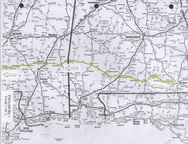 - Maps, round trip road route of troop truck convoy, Camp Rucker, Alabama to Fort Hood, TX
