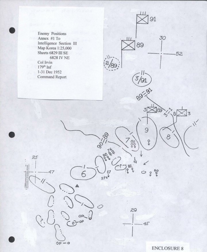 - Map Overlay, Enemy Positions, Annex #1 to Intelligence Section III, December 1952 Command Report, 179th
