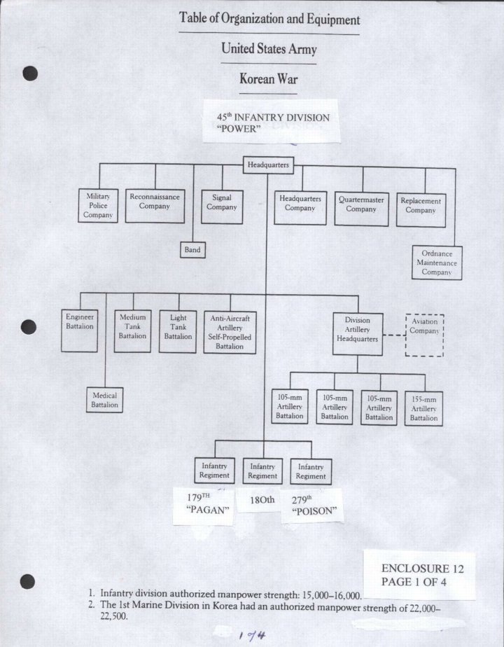 - Table of Organization and Equipment, 45th Inf Div, Korean War