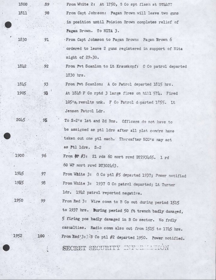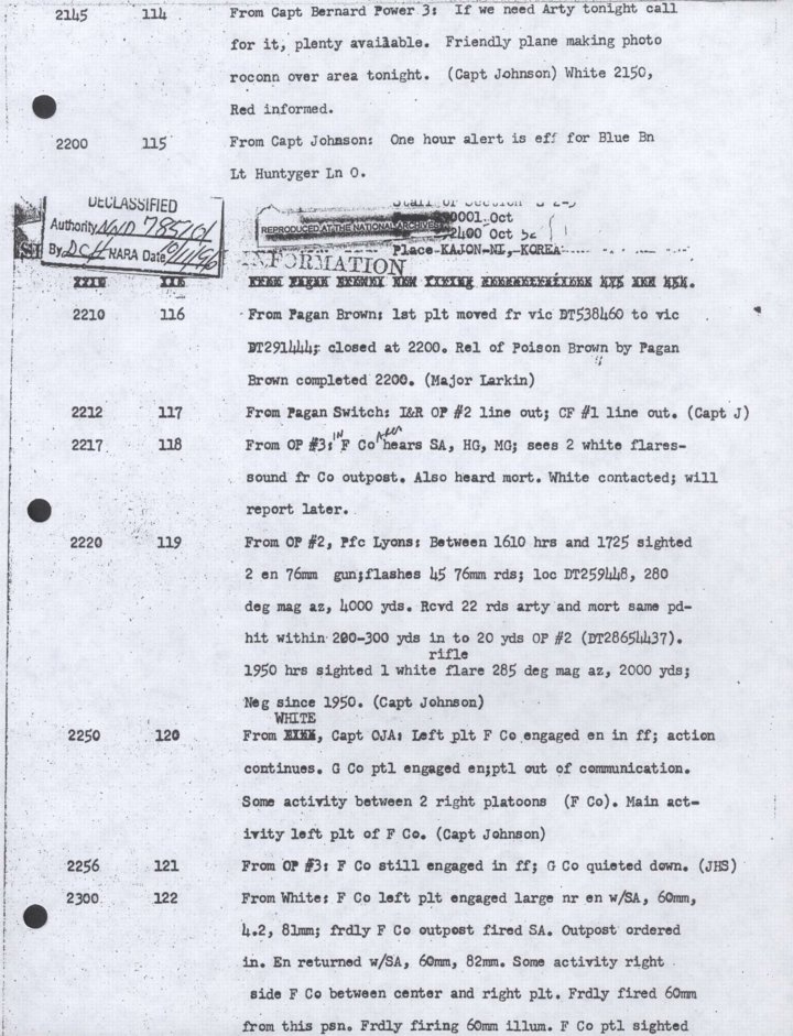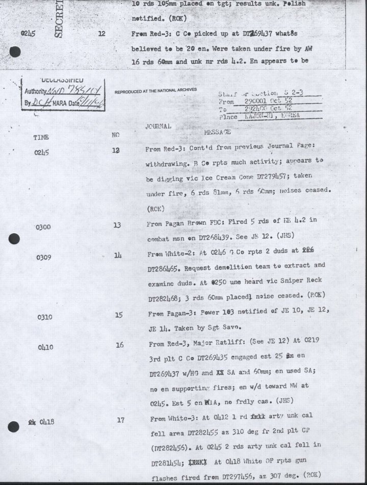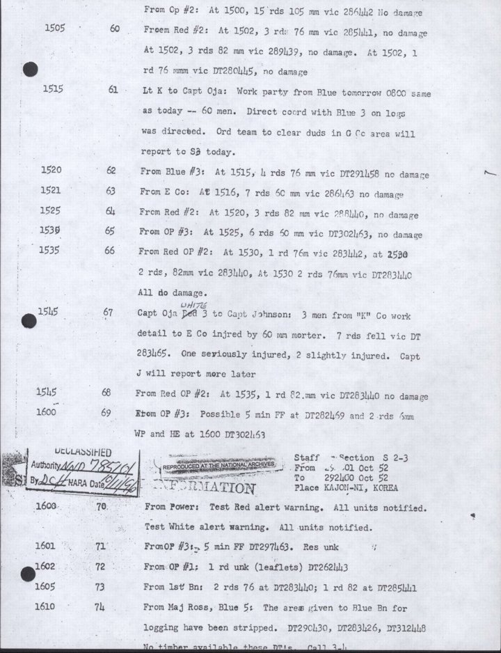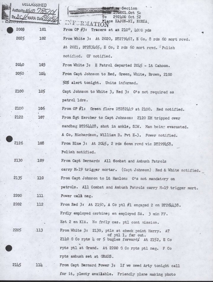 - Copy, Daily Journal for 29 Oct 1952, Monthly Command Report, 179th Infantry Regiment, APO 86