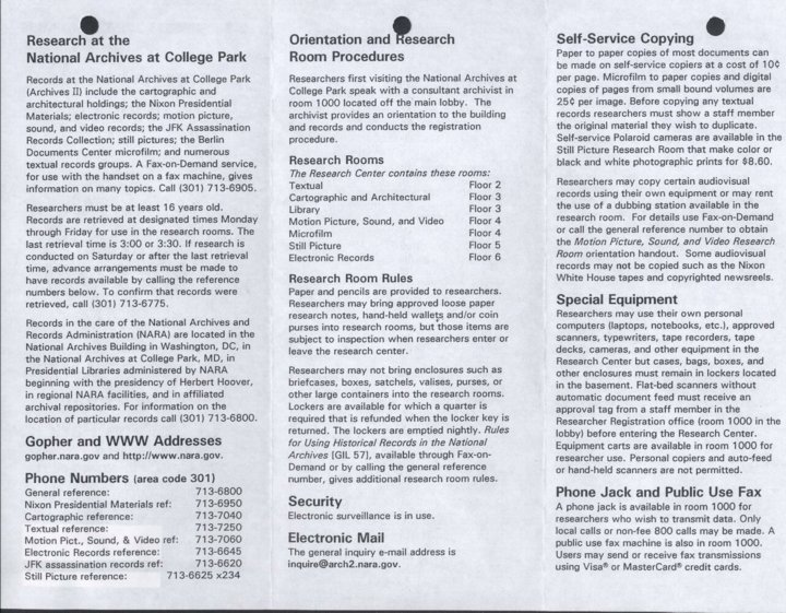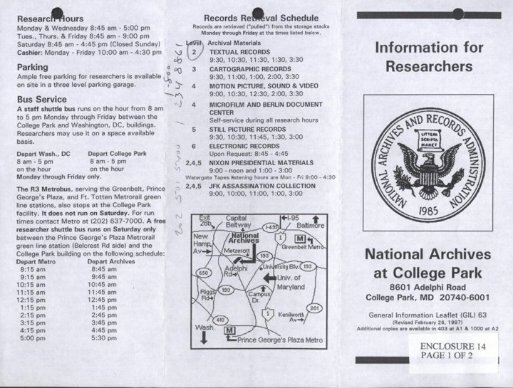 - Information for Researchers at Archives II in College Park, MD