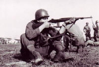 Camp Cooke was located north of Santa Barbara, California, about 90 miles. The camp was active during World War II, but it hadn’t been used for some time and it was in need of repair. We had to replace broken windows, make sure the doors worked, replace light bulbs, make sure the latrines were in working order, etc. We did this while we were waiting for our guard unit to receive replacements. We were very short of people, but they began to arrive on a daily basis. I don’t know if we ever did reach full strength. Among the camp’s uses during World War II, it had been a POW camp for the captured German soldiers. When we were cleaning up our barracks, we needed some things, so Sergeant Burke, one other guy and I received permission to requisition an army truck and go hunting for them. In the process, we came across the barracks that the German POWs had stayed in. They were very nice and in good shape. It looked as though the POWs were given paint and supplies to do with as they wanted. They even had put up signs with phrases in German. These barracks were fenced in with barbed wire, and had sentry huts. Hence, we were able to see our first POW camp. We were also able to pick up some desks, mirrors, chairs, etc.—all things we did not have. Before the war broke out, I had been promoted to Corporal, so I was put in charge of close order drill (marching and the handling of rifles) and calisthenics. It was a continuation of the training we had at summer camp. It brought everybody up to an "entry level" point and continued on from there, making sure that everybody qualified with the rifles and pistols. In the field we had hand grenade practice, gas mask training with tear gas, training capturing small mock-up towns, experience on an infiltration course, simulated combat exercises, and lots of marching with full field pack and equipment. Indoor classes were held to make sure that we understood map reading, communications, Morse code, first aid, etc. My family was not able to come and visit me as they did not have a car. Also, my parents both worked. My home was only about 150 miles from camp, so I was able to go home occasionally by hitchhiking a ride with one of the guys who had a car. When my training was over, I went home to visit my family and neighbors. My family was apprehensive to know that I was now getting closer to being shipped overseas. My friends were not around when I went home to visit. I wasn’t apprehensive about going overseas myself. I was anxious to see Japan as we all "just knew" that we would not go any further than Japan. (Ha, ha.) Ten Months in Japan