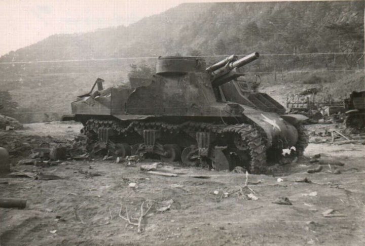 Lt. Col. Denison said nothing. He waited until the command column got back on the road to Hwachon, then went on with our column toward Sanchong-ni. It was tough, dangerous, and hard labor horsing those self-propelled monsters up that narrow gorge road. The gun treads sometimes hung out into space. The gun crews struggled with pick and shovel to dig away at gorge walls enough to ensure passage. It was absolutely heroic. We knew that if anything were to happen, we would be trapped. But we went ahead until we reached the junction north, where we turned into a plateau. It was from this plateau that we could set up and fire our guns.