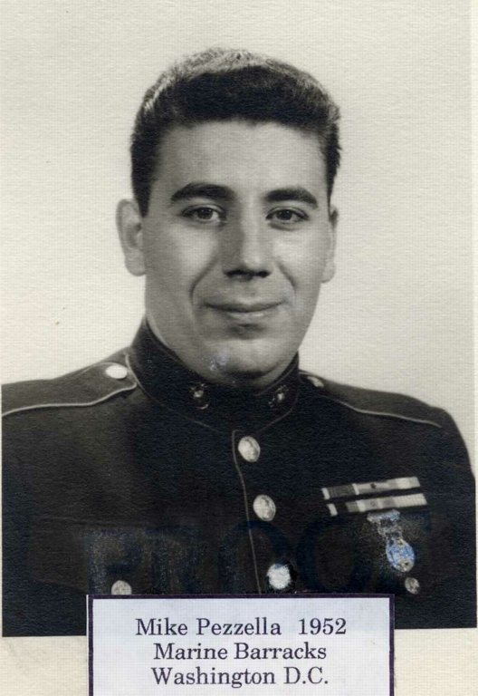 Memoir Contents:Marine Corps ReservesMy name is Phillip Michael Pezzella of Forest Hill, Maryland. I was born January 8, 1930, in Baltimore City, Maryland, the son of Angelo John and Carmen Guercio Pezzella. I was named Phillip after my fraternal grandfather. My mother disliked the name Phillip and called me Michael, which was her brother's name. Angelo was my father's name and my birth certificate actually reads “Phillip Michael Angelo Pezzella”. My father was born 1902, in Piedimonte, Sicily, a small town at the foot of Mt. Etna in 1902. When his father died, an uncle who was a gem merchant brought the family to Central America and later entered the USA at New Orleans around 1911. His mother died shortly after and he was taken to New York where he stayed until the mid 1920s. He then moved to Baltimore with a brother. Some relatives lived in New York, but I have no information about them. My mother was born in Cefalú, Sicily, and her family came to America through Ellis Island, and then to Baltimore where my grandmother had relatives. Both parents came to America because there was little opportunity for advancement in Sicily. My father was a very successful interior decorator who specialized in making draperies, slipcovers, and bedspreads. My mother sewed and ironed the materials. In later life Father gave up his business and went to work for a department store as a slipcover cutter. In 1938, when I was eight years old, my parents separated and then divorced because of my father's serious gambling problem. My mother went to beautician's school and became a hairdresser, later a beauty shop chain manager, and then opened her own shop in Washington DC in the early fifties. She gave up the shop after remarrying several years later. I grew up in Baltimore in a neighborhood of various middle class European backgrounds. In my block of porch-front row houses, there were German, Scottish, Irish, and Jewish families. This was my home until I married in 1955. I moved from Baltimore to Harford County, Maryland in 1968, and this is where I presently reside. I was an only child, and I believe I was a well-behaved child. I grew up in the home of my grandparents and often had an uncle or an aunt living there, so I had much supervision from all of my relatives. I saw my father usually one a week and did love him, though I realized his problem. My mother worked and my grandmother and grandfather generally supervised me. I was close to them and all my family. I was most particularly close to my grandfather. I attended grade school at a nearby elementary school, Baltimore City School (I believe #32). After junior high I attended Baltimore City College, which at that time was a public, all-male academic high school. It was considered an outstanding school in the city. I graduated from high school in 1948 and then attended the Baltimore Junior College, graduating in 1950. I generally enjoyed school and liked my teachers, especially my history teacher, who influenced my career as a teacher later in life. In high school I was unable to go out for football because I had an after-school job that I did not want to give up. Through most of high school I worked behind a soda fountain at a local deli. It was a good job and paid well--35 cents an hour! After a year I worked part-time as a construction helper. I was also a golf caddy. I must say honestly that this work did affect my schoolwork a bit, but I needed the money. The extracurricular activity I most enjoyed was the City College Glee Club and Junior College Choir. I did some solo numbers with both of them. We performed at other schools and Senior Centers for the most part. I played with a "sandlot team" in the Rec League and managed to join the Track and Field Team as a shot-putter. I played football in Junior College and was on the Track and Field Team. Evidently I did fairly well because I was recently inducted into the Athletic Hall of Fame of the Baltimore City Community College, which is the new name for the school. The Depression was a difficult time that I remember vividly, although my family was not too adversely affected by it. My grandfather had a shoe repair shop and did fairly well. We were more fortunate than some in our neighborhood. My grandmother often gave ironing to do to one of our less fortunate neighbors and also shared bowls of spaghetti with them. We lived near a railroad and the freight trains often carried more passengers than the passenger trains. Since there was a grade and the trains slowed, men would get off and wander down through the neighborhoods offering to work for a meal or sandwich. We very frequently had our yard cleaned or other jobs done in exchange for food. We were in my uncle's car for our Sunday drive to the Italian store that sold Italian Ice and Cannoli when the announcement came over the car radio that the Japanese had attacked Pearl Harbor. My uncle said, "My God! We are at war." Even though we were Italian, I cannot recall any verbal abuse because we were at war with Italy. The war did have some effect on my mother's family. My aunt's husband became an officer in the Army Air Force and was sent to New Guinea. He was wounded and returned to the United States. I had an uncle in the Army Air Corps, two cousins in the Army, and my cousin Biagio Pezzella was in the Marines during World War II. The latter gave me some of his uniforms, but he never spoke much about his part in the war. My school had U.S. war bonds and stamp drives, scrap aluminum drives, "Bundles for Britain". I was a civilian defense messenger and participated in air raid drills and other exercises. The names of alumni who were killed were posted in the school. I do not recall anyone in my school neighborhood that I knew personally being killed in the war. “Bundles for Britain” was a program in which schools and other community centers collected food, clothing, and other items to help the people of Britain who were suffering from air attacks 