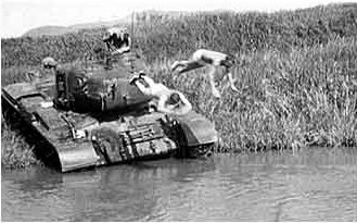 Marine Corps sector of the MLR, "A" Company tankers paused for a refreshing dip in the water. "Any combat Marine