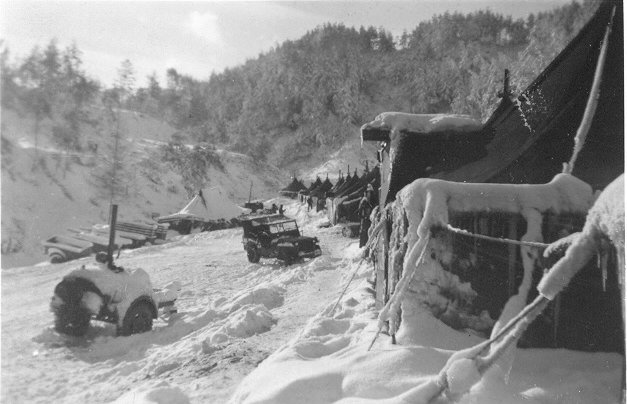 Cook ShackI have already mentioned my redneck buddy, James "Steve" Stevens from Walkertown, North Carolina. He asked me one night if I had ever eaten any fried apple pies. "Why hell yes," I answered. "I was raised on them." Steve was one of the company cooks, so he said, "Let's make some." I jumped right in the middle of it. We took some dehydrated apples that he had already soaked, made the dough, put those things together, fried them, and made friends. After I was over there four or five months, Steve came to me and said that one of the cooks was rotating back to the states and asked me to transfer to the cook shack. I told him, "Aw man, I can't do that." But over the next few days he persisted, so I transferred to the cook shack and became one of the company cooks. The dates and time I went to work in the cook shack I honestly do not recall. We had a Mess Sergeant who handled the security of chow if it needed any security. He went to Battalion Headquarters every day to pick up rations and a menu. I'll tell you, the food was horrible, but it beat C-rations to hell and back. Actually, I am only joking. We did have good food, and when possible we delivered hot food to our company men who were on detail. They were not on the front line. Those poor souls up there on the line had to survive on good old C-rations. Many was the time we had frozen turkey that we baked (it also worked fine to stuf them with cans of beer to keep the beer cool enough to drink), ground beef that could be fixed a thousand ways, canned bacon that we fried for breakfast, and cold storage eggs. Naturally, every once in a while we cracked one of those babies and it was so rotten it could gag a maggot. But we soon got over and kept on going. The food certainly wasn't like mama's home cooking, but it did beat those C-rations. Spam is Spam any damn way you try and fix it. Have you ever tried any chicken-fried spam? Well don't. It's still Spam. But forced to make a call about the best thing I ever ate in Korea, it would be the turkey we got for Thanksgiving and again at Christmas. If I was ever involved in making anything exotic, it had to be those good ole southern-fried apple pies. That was Steve's idea and they were good. I don't recall the hours exactly that I was on duty in the cook shack, but a shift handled supper and breakfast. Then we were relieved and the next shift cooked dinner and supper. Every officer in that company was a "food inspector", but the officer of the day was directly in charge of that duty. I am sure that each shift had a head cook, and Steve was probably head cook on the shift I was on. We had mess men to handle the clean up. Each platoon contributed three men for that duty. They scrubbed the big pots, etc. I don't know how many men were in our company, but a good guess would be 125. That was a bunch of growling bellies. There were no complaints as I remember, because C-rations were always waiting if they didn't like what we cooked. "Just eat it and shut the hell up." I am going to guess as to what time chow call was. Breakfast was probably 0700, lunch at 01200, and supper at 1700 hours. The cooks had to stay on their toes to know when to start things rolling so that it would be ready. The native food was a no no, and orders were given to that effect. We were told that our system wasn't used to their food, and for us to not even try it. Once we left Pusan, I don't recall any opportunity to even think about trying the native food. I don't do rice even today because every time I see it, I can smell those rice paddies. 'Nuff said. The stateside food I missed the most was anything my grandmother (Mrs. Ada) or my mother fixed. They knew how to cook and could fix a good meal from nothing. Growing up in the 30s, things were still tight. In fact, my daddy made corn whiskey to put groceries on the table. So I missed it all--black-eyed peas, cornbread, hot biscuits, fried country cured ham, fresh made pork sausage, fresh corn squash, lima beans, and on, and on. Going HomeSince we didn't have a daily TV report or newspaper to read, about all we heard was scuttlebutt about how the war was going and what was happening. It was a day by day situation with me. Of course I wanted to go home and I thought about it a lot, but there was nothing I could do other than what I was doing. At some point in time, however, someone else and I went back to battalion headquarters to check our service record book. In so doing, the clerk in the tent asked if we would like to know when we were scheduled to be rotated back to the states. Naturally, we wanted to know, and it turned out that I had about two months to go. It was the longest two months of my young life. When that day arrived, it seemed unreal. It didn't take long to pack my belongings because I didn't have that much. In fact, I had very little. The goodbyes at the Company were bittersweet. After all, I had spent almost a year with these guys, and we swore that we would stay in touch. But there were no tears. Hell, we were going home. A company truck took us to battalion headquarters where we transferred to another truck to be transported to a railhead for a stand-up ride in a boxcar for a couple or three hours. Let me digress for a moment and go back to something that had happened several months before. Sometime in the first part of March, we moved from the east side of Korea to the west side. We packed up all of our Company equipment and the troops loaded in open trucks. It was something like thirty below zero that morning. I had on everything I owned to keep warm, including my sleeping bag. I've never been so cold in my life. We arrived on location on the west side. I have no idea where, but it was about 60 degrees. What a change, a welcome change. That first night in reserve in this new location, along about 2100 hours when I was laying on my cot and there was no artillery "boom, boom" to listen to, for the first time in a long time it was quiet. In the far off di
