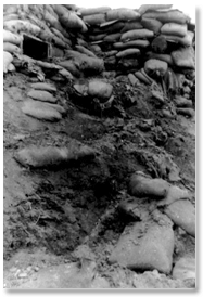 As predicted, shelling went on all day. Someone sitting right next to me got shrapnel in his leg from a cannon shell. No one in our company fired back. We just sat waiting.