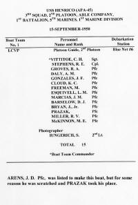 Inchon Landing/WoundedWe boarded the USS Henrico at Pusan on the morning of September 8th and arrived off the coast at Inchon the afternoon of the 14th (this is all guess work). We stayed onboard the ship and watched the fireworks as the ships in the outer harbor shelled, and the planes strafed, the beach area. On the trip to Inchon, we had been briefed that we would need to climb ladders to get out of our boat and over the sea wall. There were two ladders in each LCVP. But since no one had ever experienced this before, we were breaking new ground in amphibious warfare. We knew where our debarkation station was located and the location of the cargo net we were to use to get to our landing craft. Inchon harbor was filled with all kinds of ships--every kind the Navy owns. I'm not sure it wasn't all the ships the Navy owned. I have no idea how many there were, and couldn't even guess. All I know is that there were a whole bunch. There was also Marine and Navy aircraft. There could have been Air Force as well, but I wouldn't know. I didn't pay attention to the aircraft other than watching them strafe and bomb the area. I don't remember now, but I'm sure it was noisy. I don't think they killed any North Koreans, but they did make them duck into their foxholes and trenches and keep their heads down.