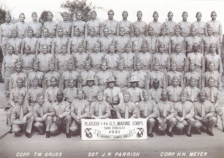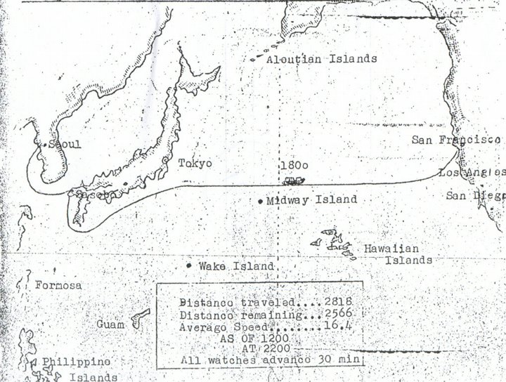 We were schooled in The General Orders -- what a guard's responsibilities were and how he should perform. You had to memorize the general orders, they tested you on it. They also taught us how to fire a rifle and pistol, as well as hand grenade throwing. Because a Marine is basically an infantryman, all Marines have to familiarize themselves with all kinds of basic weapons. The other branches of the service only know what they're supposed to do within their MOS. But in the Marine Corps, every Marine is a rifleman. There were several who did not make it out of boot camp. Some went to sick bay because they just couldn't take it. Some were given a "Section 8," which meant they visited the psycho ward because they broke down mentally. But that's what the DIs wanted to find out -- who could hack it. They did this in a training environment so we would not crack under fire. We would have to function as a team to survive in combat. There was no place in the Marine Corps for those who would crack under the strain of combat. The people who went to sick bay (not the psycho ward) who improved physically, were put in a delayed action platoon. Nobody wanted to go through another week or even another day of boot camp unnecessarily. Those who claimed they were sick or injured were most likely really incapacitated. When boot camp was finally completed there was a ceremony. Usually we wore our dungarees. On graduation day, however, we wore our service uniform. In this case, due to the time of year, it was our "Greens". If it was Summer, we wore our "Khakis". Now I understand that they have dress blue uniforms at graduation. But when I was in the Marine Corps, those were never issued to us. Once dressed, you went out onto the parade field and marched in front of the commanding general of the base. An honor platoon (the best platoon in boot camp) was picked. All of the officers were there. Parents and family members were allowed to come and watch their sons graduate. That was a very proud day for me. And it still is! My mother couldn't come because she lived in Wisconsin. It was too far and expensive for her to come, especially for just one day. But I had one months worth of leave on the books, so I went home. I was very proud of my status as a U.S. Marine. When I came home from boot camp, I felt like I was on top of the world. Leaving boot camp was synonymous to what it must feel like when you get out of prison. But I felt great because I knew that I had achieved something that was really hard to accomplish. Having played football in high school, I thought I was in real good shape physically. When I went into the Marine Corps, however, I found out what real physical fitness was all about. After my 30 days of leave were up I went back to Camp Pendleton for more extensive infantry training. This was called "ITR" (Infantry Training Regiment). In order to better prepare us for combat we received more testing on the rifle range, as well as on all the basic weapons the Marine Corps had. We were instructed in hand-to-hand combat, as well as bayonet training. We were taught that when you are in combat, and you are face-to-face with the enemy, you MUST keep in mind that its either you or the enemy. The training was so intense and pervasive, you did anything they commanded you to do. In other words, you listened, and obeyed, your orders like a good Marine. You didn't question orders. You were a member of a team and acted accordingly. The Chosin Reservoir campaign had recently ended and there was a push to get us to Korea as soon as possible. Unlike some Marines, who were fortunate enough to go to Bridgeport, California, we didn't receive any cold weather training prior to departure. Although it wasn't a surprise, we realized that we would be going aboard ship to either transit to Korea or participate in a Mediterranean cruise. The majority, of course, would go to Korea. Although I would have enjoyed an opportunity to see the Mediterranean, I knew my destiny was Korea. Shipping Out