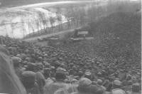 I stayed in Korea for twelve months. During that time there were three occasions when I felt I was in imminent, personal danger. We had three major campaigns for which we received battle stars. One was the UN summer/fall offensive. The next was the second Korean winter campaign. The third was the Korean summer/fall defense of 1952. During one battle, I was shot and wounded by a sniper. That happened on January 28, 1952. I was on Bunker Hill in August of 1952. The fighting there was quite heavy and we had many casualties. I lost many friends. After the engagement was over there were bodies laying all over the mountain side -- Americans, North and South Korean, as well as Chinese. Fortunately, most of the dead lying there were North Koreans and Communist Chinese. The graves registration folks took care of our dead. But the bodies of the enemy just laid there. No one came to retrieve them. After a couple of days, the bodies started smelling. That whole hill stunk. It was so bad you wanted to gag and vomit. You would lose your appetite. I left the area soon after so I never found out what happened with the bodies left behind. Going Home