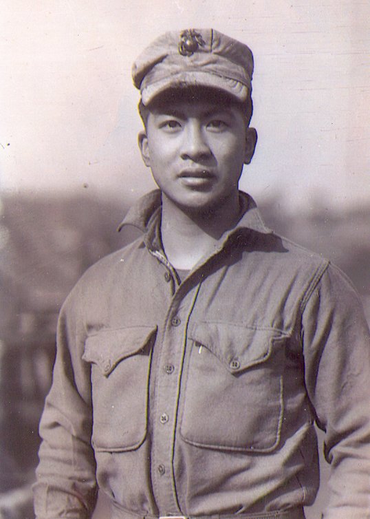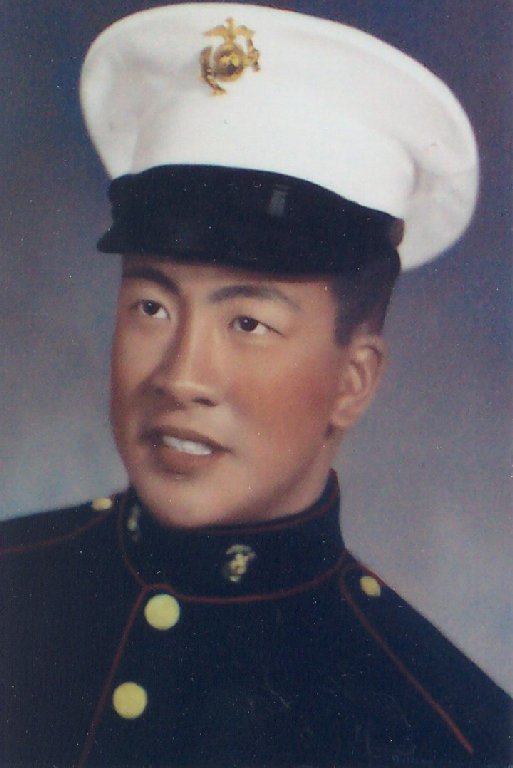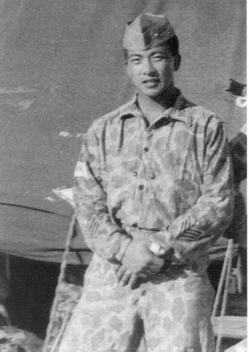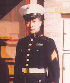My name is Herbert Wong, but everyone calls me Herb. I was born on August 18, 1930 in West Allis, a suburb of Milwaukee, Wisconsin. I lived in West Allis during my early years (1930-1959). I was married in 1959 and moved to New York, where I got into the restaurant business working for my sister. In 1970 I moved my family to State College, Pennsylvania, where I currently reside, and opened the first Chinese restaurant here. My parents were George and Chan See Wong. They were both born in mainland China. Following their marriage in China, my parents immigrated to America in the late 1920s. My parents raised seven children. I have one brother and five sisters, three of whom were born in China. All who were born in China, including my parents, became naturalized U.S. citizens. In 1937 my father had a stroke. I was seven years old at the time. I don't remember much about it except that when I saw him in the hospital, he could not speak. He would write something on a piece of paper and we would read it. During his illness and eventually after his passing, my mother became the sole provider for our family. There were not a lot of children of Chinese-decent where I grew up in Wisconsin. Most were spread out throughout the area. I attended Roosevelt Grade School in West Allis before entering Holy Assumption Catholic school for a couple of years. I went to Horace Mann Junior High School before entering West Allis Central High School. At Central I played four years on the football team as a guard. During those years I was chosen Most Valuable Player and team captain. I was also on the All-Conference Team sponsored by the Milwaukee Journal. This team was selected by high school coaches throughout the Milwaukee area. I graduated from West Allis Central in 1949. Following graduation I began working in construction. I also signed up to play in the Wisconsin State Football League (a state amateur football program). I started for the Raatz Inn of Milwaukee. We were the undefeated state champions that year. World War II was coming to a conclusion when I entered high school. The war had considerable influence within my life. There were all kinds of war-support programs that I participated in. The school was very patriotic and attempted to contribute to the effort in many ways. Among the support efforts we participated in were scrap metal collection, buying war stamps and war bonds, and other things. When the war started, I was 11 years old. Even at that age I had a strong sense of patriotism. I always followed the war in the news. I listened to the radio all the time to hear what things were going on. I always wanted to be a member of the Armed Forces, but I was too young at that point to do anything. As a young kid I would read about all the heroic efforts that were happening during the war. I always wanted to be a Marine. I thought they were the most "gung ho" service. I was very proud of them. Since I was too young to join the military, I turned my attention to after-school jobs. I used to shovel snow. I worked in all different places. I was a workaholic. I did any kind of job I could get while I was in high school. I even worked at a soda factory two hours in the morning before I started classes. My job was to load and unload the trucks at Grafs Soda Plant in Milwaukee. I held a variety of jobs, mostly labor intensive. Throughout high school I worked on numerous construction jobs -- homes, buildings, offices, etc.. A friend's father was a builder, so I was able to work while getting on-the-job training. By the time I was 12 years old, I had steady work. I also worked on a Chinese farm, where we grew Chinese vegetables. We sold the vegetables in Chicago to the Chinese restaurants. For one of my jobs I worked in Chicago. When I was almost 12, I got a social security card by claiming I was sixteen. At that time you had to be that age to get one. That was 1942. One member of my family served during World War II. My older brother was old enough to serve early in the war, but delayed entry since he was studying engineering at Marquette University. Later, after changing majors, he became a dentist. Eventually he became an oral surgeon. My brother was a captain. He was in the Army ROTC program and after commissioning, was sent overseas during World War II. He served in China, Burma, and India. Joining the CorpsWith the Korean War underway, I enlisted in the Marine Corps on April 4, 1951 at our local Post Office in Milwaukee. I was a proud, and excited, 21-year old eager to serve my country. The Marine Corps sent me to San Diego for boot camp. The dividing line that determined whether a recruit would train at Marine Corps Depot Parris Island or San Diego was the Mississippi River. If you lived east of Mississippi you went to South Carolina. If you lived west, you went to California. Milwaukee was actually east of the Mississippi but Parris Island was so filled up with recruits at the time that they sent us west to San Diego. Because of the Chosin Reservoir campaign and the heavy loss of Marines, they started drafting Marines in addition to the traditional preference for volunteer enlistments. We traveled to California via troop train. As we went through the different states to San Diego, we picked up Marine recruits all along the way. I don't remember the precise route, but I remember that one of the first stops was in Chicago to pick up additional recruits. There were Pullman cars on the train, so we slept on the train. As we traveled, we got to meet more and more recruits from different parts of the country. It was very friendly along the way. We had good times in the dining car. Everyone played cards or talked, until we got to boot camp. Then everything changed abruptly! Boot camp is an experience I'll never forget. When we arrived at San Diego there were busses waiting for us, as well as the drill instructors (DIs). Immediately, they started screaming and yelling at us. We wondered what we had done. We got