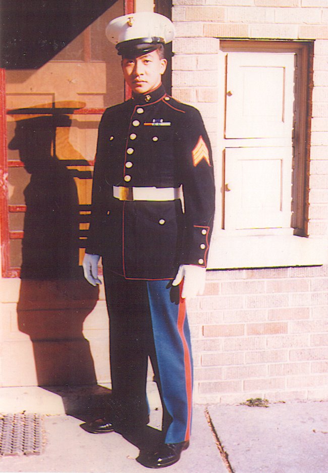 In 1958, there was a mild recession. Jobs were pretty hard to find at the time. Following graduation I met and married Theresa Lee. I used to go to Chinese student parties while I was in college. In fact, I was president of the Chinese student club in Milwaukee. It was a national thing. They had chapters throughout the United States. I met Theresa at the party and began dating her. We were married in early February of 1959. Nine and a half months later, our first child, Susan, was born. Two years later we had a boy, Herbert Jr. Two years after that our daughter Denise was born. And two years after that, we had another boy, David. David later went on to become a Marine. He went to Marquette University and got a Navy ROTC scholarship for all four years. He was a captain in the Marine Corps and served in the first Gulf War. He received the Navy Commendation Medal for calling accurate fire in on the enemy. I am very proud of him-- first, for being a Marine, and second for earning that medal. I'm proud of all my kids. I think they are terrific. As of 2002 I have nine grandchildren (five boys and four girls). After I got married, I didn't know what to do for a living. My brother-in-law said to come to New York and work with him for a while. I had four sisters in New York. All of them owned good-size restaurants. One restaurant was Gam Wah, which had 30 waiters in it. Our family had always been in the restaurant business. My Dad had a restaurant -- one of the first Chinese restaurants in Milwaukee. When he died, we lost all that. Some friends of ours had moved to State College, Pennsylvania. That was during 1970. They said it was a growing town and the people there needed more restaurants. The home of Penn State University, college students often stood in line till 2 a.m. in the morning to get something to eat. My friend said, "Why don't you come out here and open up a Chinese restaurant?" And we did. We opened the first Chinese restaurant in town. We called our restaurant "Suzie Wong's." We named it after our first daughter. Our children worked with us in the business. I'm retired now, but we still do catering of Chinese food. We are particularly known for our egg rolls. Son in the Gulf WarIt is not always easy being a Marine veteran, especially when you have to watch your own son go off to war. That is what happened, as I previously mentioned, with our own son David. I knew about combat, so I was very concerned when David left to participate in the first Gulf War. During Operation Desert Shield, David was stationed in Okinawa. We anticipated there was going to be a ground phase to the war and those units closest to the Gulf area would likely be called in first. That's when I started to get concerned, like any father would. My wife and I would stay up all night worrying about David. We couldn't sleep. We watched CNN all the time to find out what was going on. I became very religious at that point and began attending church every morning.