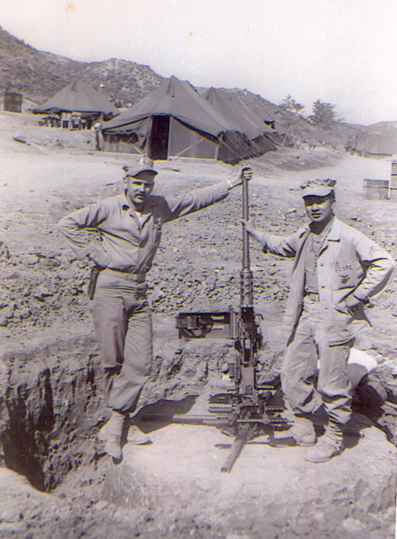 An outpost was a forward observation position (OP). While other troops stayed further back, those in a forward observing area moved closer to the enemy. There were only a few people who went to the OPs. OPs are like a finger that sticks out. It is the eyes and ears of the organization. In our particular OPs, we were in front of the mountain. We would radio back and report what we observed the enemy doing. Scouts would move forward from the OP to infiltrate enemy territory. In effect, we were modern day versions of the old wild west scouts of the American Calvary. I usually went by myself to an outpost. A lot of times the enemy had us zeroed in because they know we had only one route to get us there and back. I compare their tactics to hunters. They knew deer used certain paths, so they'd wait knowing we'd be coming through in one direction or another. But we took the chance anyway. Our tactic was to just pray and run like hell! We generally used nighttime for cover. Were those at an outpost easy targets? The answer is both yes and no. When we were there, the enemy could see us. But we could also see them. We had a few advantages also. We had observation planes. When we spotted the enemy, we'd call in air support. I'm thankful the enemy did not use their aircraft, especially when I was there. For the most part, the U.S. and its allies had air superiority, therefore it was almost impossible for the North Koreans and Chinese to deploy observation aircraft. We relied on our scout planes to check for enemy presence in the area. I saw American aircraft all the time. I watched what our air power could do to the enemy and it was devastating. Many times I watched strafing runs followed by a rocket attack. Then came napalm, which is a jellied gas. Napalm was particularly nasty. Once it got on human skin it just kept burning. There was no way to put it out. I tried not to get too close to others. It was hard losing friends. If you didn't have close friends, the pain of losing them in combat was less. Right? I recall some "short-timers" who were due to rotate out of Korea in a few short weeks. One night these Marines went out on a scouting patrol, only to be attacked and knifed to death. I was not that close to these Marines, but the loss was hard nevertheless. But there were those I did become good friends with. Marine Jerry Levenhagen was from my hometown. He played football and graduated the same year that I did. I remember him real well. Marine Richard Hertensteiner, a World War II veteran, taught me a lot of things about the Marine Corps. He was from Sheboygan, Wisconsin. He went overseas with me and ended up with my S-2 section. Both survived the war. I also remember Ron Ziolecki and Charlie Jump. I was close friends with both of them also. My commanding officer was Lieutenant Colonel Gerald T. Armitage. Officers and enlisted men don't mix company so it would be a stretch to say I knew him very well. But I did respect him very much. During the latter part of my duty in Korea, I worked in the colonel's office quite a bit. I did a lot of overlays for him and assisted in the planning. Following the war I tried to look him up, but was unsuccessful. Several years later, when I received a copy of a Marine Corps directory, I noticed Colonel Armitage's name and the fact that he was living in Naples, Florida. What a surprise that was! That was in 1998. Here it was, 47 years later! I gave the colonel a call and was surprised that he remembered me quite well. That made me feel good. I would like to go see him one of these days, but he is in his 80s now, and I'm no spring chicken myself. We had a nice talk on the telephone and have continued to keep in touch via the mail. The Marine Corps is such a small world. There is another officer, Colonel Gerald Russell, who served in Korea and now resides in my home town of State College, Pennsylvania. Colonel Armitage told me, interestingly enough, that Colonel Russell had command of the battalion that was supporting us when we made our last "push" in Korea. At Bunker Hill, we needed support and LtCol Russell sent reinforcements to help us out. Working with ANGLICODuring daylight, when I was at the outpost, I observed enemy movement, which I reported to a group called ANGLICO (Air Naval Gunfire Liaison Company). ANGLICO coordinated fire missions to inflict the greatest damage possible. ANGLICO's expertise enabled us to take the desired "high ground." This allowed us to maintain key observation posts that gave us the best positions to observe enemy activity.