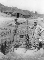 In my assignment, most of the time, I carried a .45 caliber pistol. I also carried a carbine, which is a small lightweight rifle. This provided me the mobility I needed around. I seldom carried the M-1 Garand rifle because it was bulky and difficult to maneuver on patrols. I also carried a K-Bar fighting knife. I had a sniper rifle with a scope on it when I went to the outpost. One of my jobs as a scout was to snipe at the enemy. Among other weapons, I carried hand grenades also. They were different looking from enemy grenades. We had regular, serrated grenades. The enemy had long strange-looking ones. I remember too well what they were like, but I seem to recall that they were like German World War II grenades -- canister-like devices. We also had concussion, white phosphorus ("Willie Peter"), and smoke grenades. The enemy had similar variations, but they were generally inferior to ours. My job in Marine intelligence could possibly be compared to work done by the FBI. We were there to find out how strong enemy troop concentrations were, what they were wearing, where their clothing came from (i.e. Russian or Chinese). I observed some enemy combatants who were wearing American items. Some had American cigarettes, American script, American pens, etc. That meant that they must have looted American war dead bodies or confiscated the items off prisoners. We sent this kind of information back to our S-2. At the division level it was the G-2. They assembled all the information we provided them. From there, they attempted to figure out how strong the enemy was, what units were fighting us, and things like that. I also occasionally found drugs on them. The enemy had a lot of quilted clothing. For shoes they had tennis shoes or what we call sneakers. They wrapped strips of cloth around their feet so many times. At that time, Marines wore leggings. You don't see leggings anymore. They have been outdated for a long time now. The enemy wore heavy, quilted material around their legs (bands of cloth wrapped around their legs--like soldiers did during World War I). Weather ConditionsI grew up in Wisconsin, which is known for being bitterly cold in the winter. But the weather in Korea was even colder and more nasty. I think that was because it was so damp and because the wind came gusting in through the hills from Manchuria. (Wisconsin doesn't have the hills.)