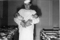 I graduated from corps school on March 8, 1951. Since I was one of those who scored in the upper fourth in the class, I had the choice of selecting any naval hospital in the U.S. for my internship. I chose the Naval hospital in Oakland, California, since it was only 35 miles from my home. I fully expected to be assigned to a ward where incoming Korean wounded were cared for and treated. To my complete surprise and dismay, I was assigned to the newborn baby nursery. I requested an assignment to a ward, but it was denied. My job was to bathe, comb, administer vitamin K shots, dress, feed, and care for the new arrivals. When the need arose I was also to assist in the delivery room. I learned to thoroughly enjoy taking care of all those babies. We had up to thirty at one time. Billie would come to visit me every opportunity she had, and when I got liberty from my duties, I went home to San Jose. On some occasions I could get a free flight to the Naval air station in Mountain View (Moffet Field), where I hitched a ride to Los Angeles to visit Billie. On one of those trips I proposed to her and presented her with an engagement ring. I had independent duty at least once a week for four hours after my regular full day in the nursery. I was assigned to care for a terminally ill adult. I took his or her vital signs, checked for bed sores, and performed general nursing care. I did not feel that I was going to be prepared to care for the sick and wounded from Korea if I continued in the nursery. I never did have combat corps school or field medical training. I really had no plans to request for duty in Korea. I got to the point where I was perfectly happy working in the nursery. But my friend who worked in the premature nursery informed me one day that there was a posting in the office that I would be interested in. He knew I had a girlfriend in Los Angeles. He told me that corpsmen were needed aboard a navy ship in the Long Beach area. I jumped at the chance to sign up, because the ship would be permanently stationed at Long Beach. I would get to be with my girlfriend on a regular basis—so I thought. There was no such ship. What my friend and I signed up for was duty in Korea. I received my orders for duty in Korea around the end of July 1951. Marrying BillieBillie knew that I had inadvertently signed up for Korean duty. I phoned her to tell her that I was being shipped out to Korea in two weeks. She caught the Greyhound bus to San Jose, and stayed with my parents. That’s when we decided to get married. We drove up to Oakland Naval Hospital and got tested. After that, we got the marriage license and then got married by a justice of the peace in Oakland on August 9, 1951. We did not tell our families. My wife went home to Los Angeles and I reported for duty on the aircraft carrier Windham Bay on the 19th of August. I saw my wife when the ship went to Long Beach to pick up aircraft to be transported to Japan. No one was to get liberty, but I spoke to the Chaplain and he got me an overnight liberty. I did not see my wife until a year later, when the USS Consolation rotated back to the U.S. We stayed with her relatives. We had a very small religious wedding at the Mother of Sorrows Catholic church, but we did not set up housekeeping until I was discharged from the Navy in August of 1954. She lived with her girlfriends until she got a job in the mail department of the California Lutheran Hospital in downtown Los Angeles. She rented an apartment as soon as she had the necessary rent money. Billie has added to my memoir with the following recollections of her own about that time in our lives: