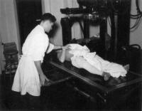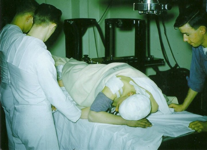 I was transferred to the Consolation on October 16, 1951, and I spent the next two years aboard her, primarily in surgery. I assisted in all surgery rooms as needed. As the surgeon's assistant, I prepped the patients, set up the instrument table with all necessary instruments, and when the operation began, handed the correct instrument to the surgeon. After the operation, I cleaned and prepared the room for the next patient. Sometimes we had very little time to clean up between those incoming patients. The only difference between the Consolation and the Haven was that the Consolation had a helicopter pad on its top deck and the Haven didn't. It had a red cross on the helicopter landing platform. The ship was lit up at night so we wouldn't be mistaken for a war ship. The main mast was lit up like a red cross. I don't know the length or width of the hospital ship. I can only say that it was bigger than a destroyer. Shortly after it arrived in the Pusan harbor, the Consolation sailed on to Inchon. As I understood it, the Allies had retaken the city of Seoul and the war was now further north, so the Consolation was ordered to Inchon Harbor, which was just south of the capital. It would take a lot less time to receive casualties at Inchon than if the Consolation was anchored further south at Pusan. It was around November that the move was made to Inchon. I never did meet with William Choi again. I tried contacting his sponsors, who once lived near San Jose, but was unable to locate them. TriageWe knew in advance that we would be receiving casualties because the field headquarters sent a message to our radio room. Our radioman then relayed the message to the officer of the deck. He informed our chief of surgery. Those of us in surgery were then notified to be prepared to receive casualties. Casualties were brought to the Consolation by helicopter and landing craft. As casualties arrived by whichever transport, a doctor would be on deck to check each patient. He then directed the corpsmen to take the patient to the necessary department. Most of them went directly to surgery. A few less serious ones went to X-ray or some other department. In two of the photos in the slide show in my memoir, you can see the doctor talking to the pilot or waiting for the corpsmen to carry the patients to him. There were many times that we had high influx of casualties during my tour of duty aboard the ship. Most of them were because an offensive battle by one side or the other. The Consolation was in Korea during the major battles. I was aboard during four of them. Besides these major battles, there were many other smaller in number attacks by both sides. As far as I was concerned, every time we received a high influx of casualties, I considered it to be a "major battle." And it happened too often. During the high influx of casualties, we operated on casualties up to four days straight. We handled all types of wounds. The most serious were operated on first. During the winter we had terrible frost bite casualties (feet and hands). Most of the injuries were caused by shrapnel in the brain, thorax, and abdominal areas. We had injuries in the extremities caused by land mines or hand grenades. We also had several patients who were treated for something other than war-related wounds. One that I remember was a high-ranking officer who had fallen and had a ruptured bladder. We repaired it. Remembered Patients