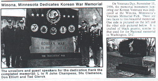 On Veterans Day, Nov. 11, 1996, the memorial monument honoring our Korean Veterans was dedicated