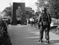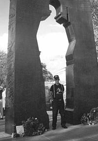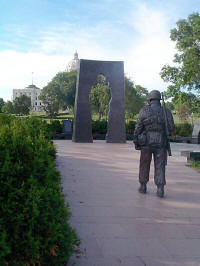 bronze silhouette column and 8 foot tall cast bronze soldier were unveiled, under direction of Jerry