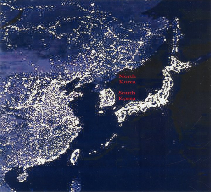 South Korea is bright, and North Korea is nearly dark. "Yes, this shows the United States of America