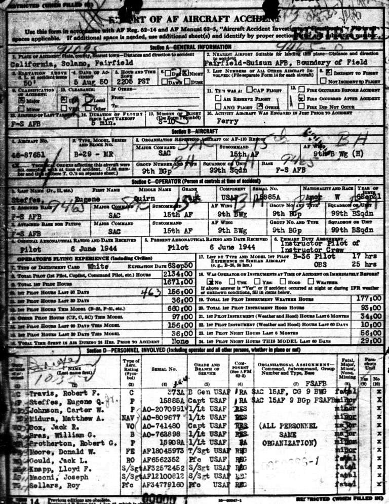 He enlisted in the US Air Force on January 6, 1949, and was serving with the 99th Bomb Squadron of the 9th Bomb Wing at Fairfield-Suisun AFB (later Travis AFB) when the tragedy