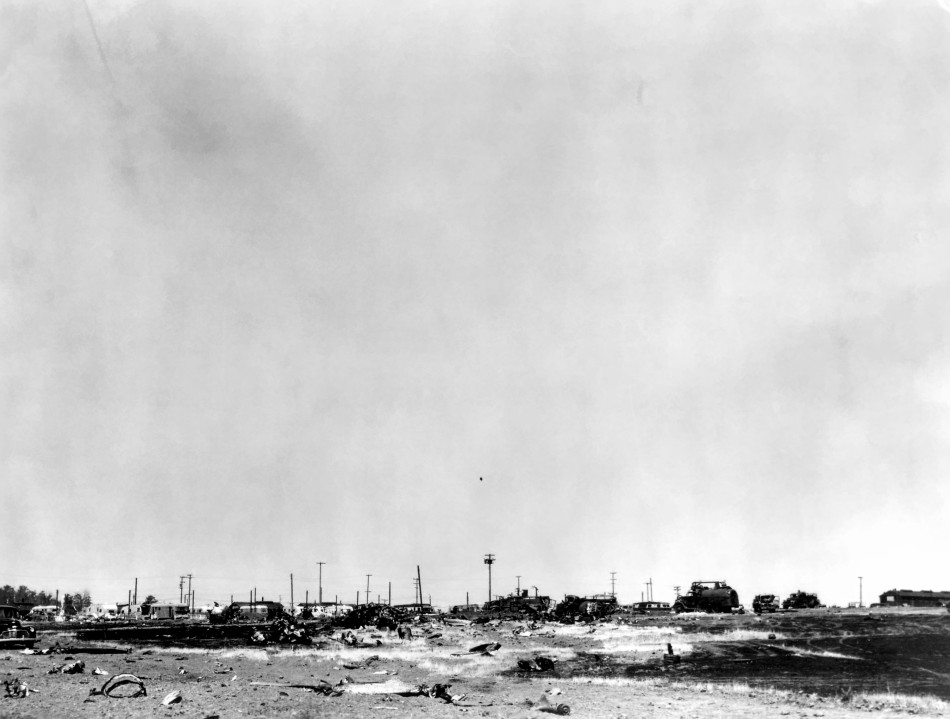 Exploding bombs left a crater 60 feet in diameter and six feet deep. Ramoneda, five members of the crash crew, and 12 men still aboard the B-29 were killed in the fire and