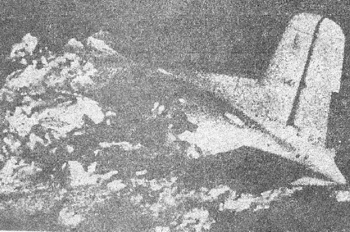 fuselage making two full turns before exiting. It took two men out with it, idled the No. 4 engine and cut