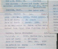 PFC, US Marine Corps, 22 years of age. Died Aug. 18, 1951 in action in Korea. Next of kin – Mr. and Mrs.