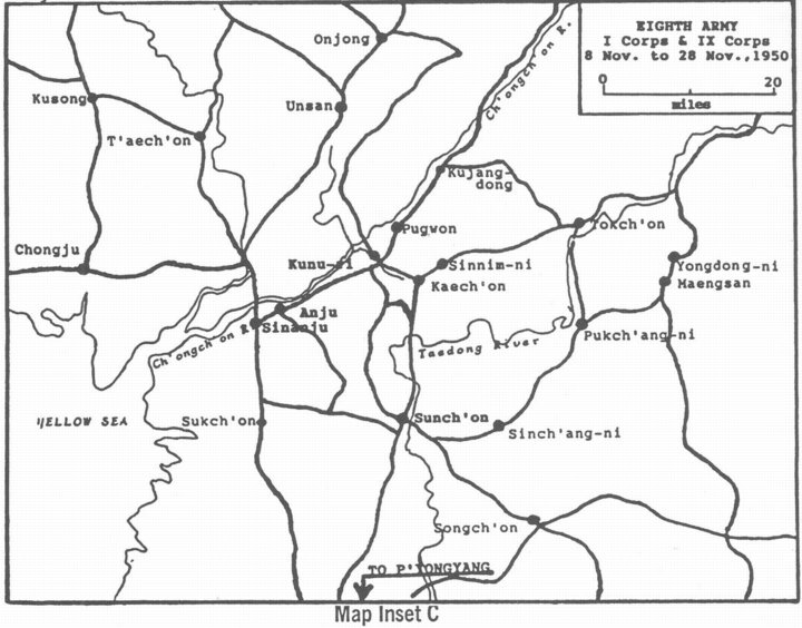 Following the "Wonju Shoot" and the 23d Regiment's stand farther west at Chipyong-ni, it was apparent that the CCF had suffered a major defeat by the rejuvenated Eighth army. Their main forces were pulling back to positions just north of the 38th Parallel. An advance was ordered by both IX and X Corps. On 20 February the 9th Regiment, having relieved the 187th northwest of Wonju, started forward in a northeasterly direction. Their sector presented enormous problems: high mountains, no supply route, and the few trails were muddy quagmires from the recent rains and winter thaws. They also faced stiff enemy opposition from the rear-guard CCF units during the first five days of March but they stubbornly moved forward and by 6 March occupied a position 12 miles northeast of Wonju on the high ground along route 20.