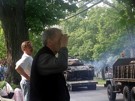 was wearing the four cornered Polish hat with the Polish Eagle, the emblem of Poland: acting as a motorcycle messenger