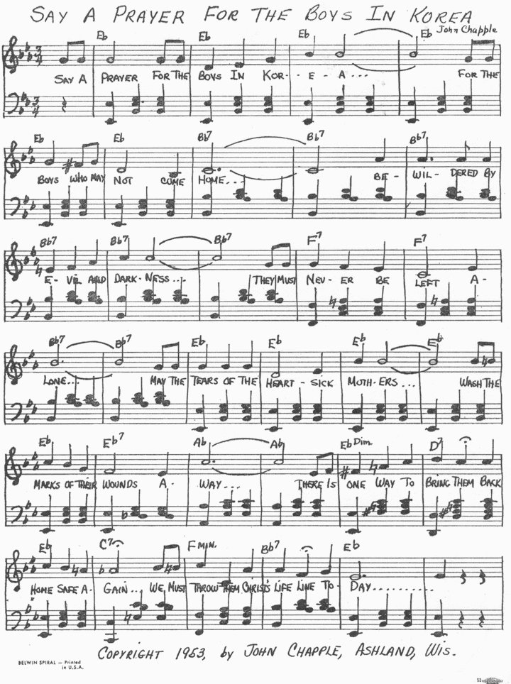 Prayer for the Boys in Korea." A copy of the sheet music for the song was found by the Korean War Educator