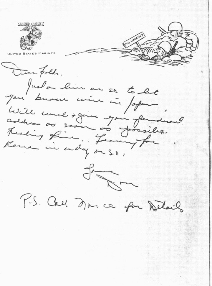 [KWE Note... the following letters are scans of his originals and will open a new pop-up window for viewing.  Close that page to return to this index.]