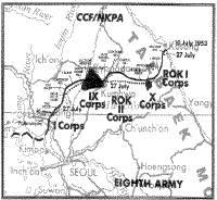 counter-attacks cold, the front stabilized north of Seoul. With the start of armistice negotiations in July