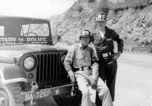 Military Police728th Military PoliceAccording to this history, the 728th was initially activated January 19, 1942 at Fort Custer, Michigan. Originally used to train troops for combat duty and maintain "alert status" for protection of war production industries in Detroit, Michigan, the 728th remained on US soil until August 1950. The battalion was then alerted for overseas movement to Yokohama, Japan. Following the North Korean invasion of the South, the 728th was transferred and reassembled in Pusan, South Korea. Its new mission during the Korean War was operation and control of traffic on the Green Diamond Main Supply Route. For the next eight months, many members of the unit took an active part in combat operations in surpassing guerilla activities and responding to ever changing tactical situations. The battalion made a number of moves during its 30 year history in the Republic of Korea, including Pyongyang, Seoul, Taejon, Yongju, Wonju, Chipyoungni, Hongchon, and Chunchon. The photograph of MPs Fuller, Thompson, Parido, Mays, Jacobson, Goldberg and Gilbreath (far right) was taken at a place called "The Rock Pile."After the Inchon invasion, the battalion headquarters was moved to Inchon and later, as security increased, found its way to Seoul. In 1951, the battalion assisted in traffic control and various other law enforcement duties. After the truce was signed, the 728th mission was to provide military police support to installations around the Republic of Korea and, when necessary, keeping peace on the peninsula. One of the more well-known missions of the 728th was rendering assistance in the return of the crewman of the USS Pueblo who had been captured and incarcerated by the North Koreans. Members of the battalion were present at Panmunjom to accept release and provide security. In 1984, the 728th was incorporated into the 8th Military Police provisional brigade at Seoul. These three 728th Military Police Battalion photographs are shown courtesy of Don Parido of Illinois. He is standing next to the jeep in the first photo on the left.