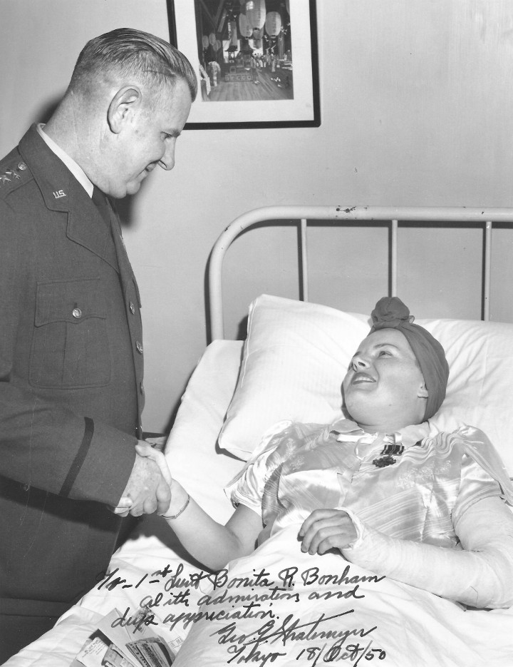 from Korea.In June 1950 there was only one Army nurse (Capt. Viola B. McConnell) on duty in Korea.
